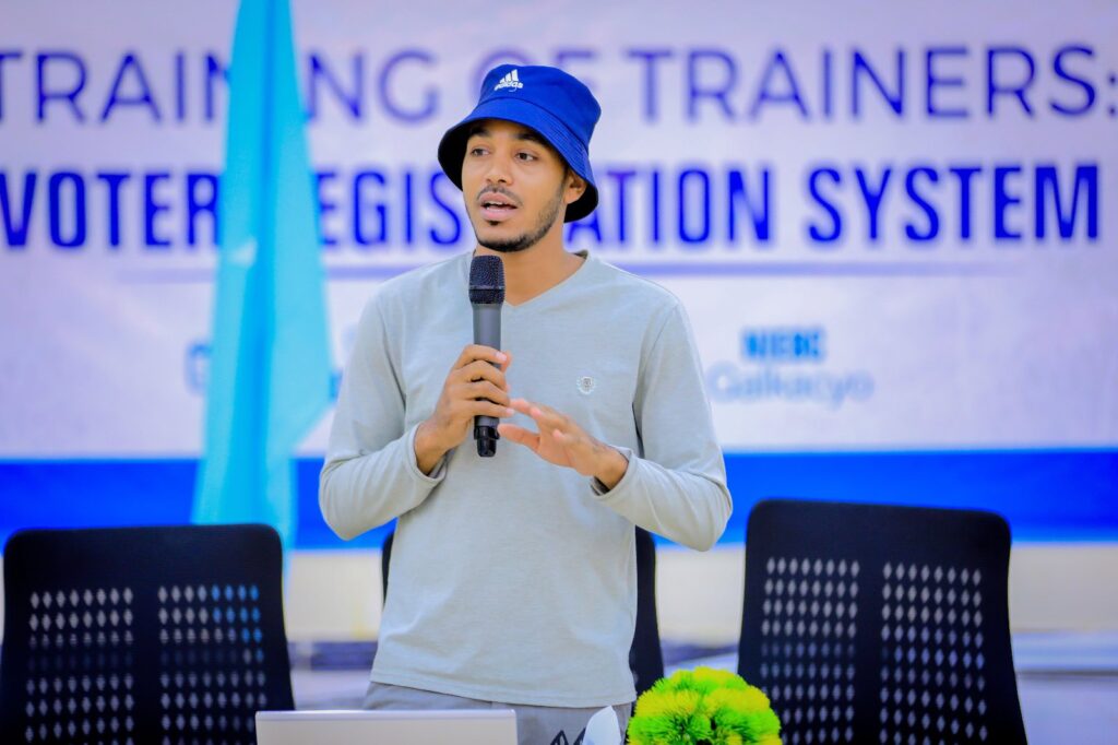 Soohdimaha oo magaalada Gaalkacyo ku tababaraya Shaqaalaha Diiwaangelinta codbixiyeyaasha.