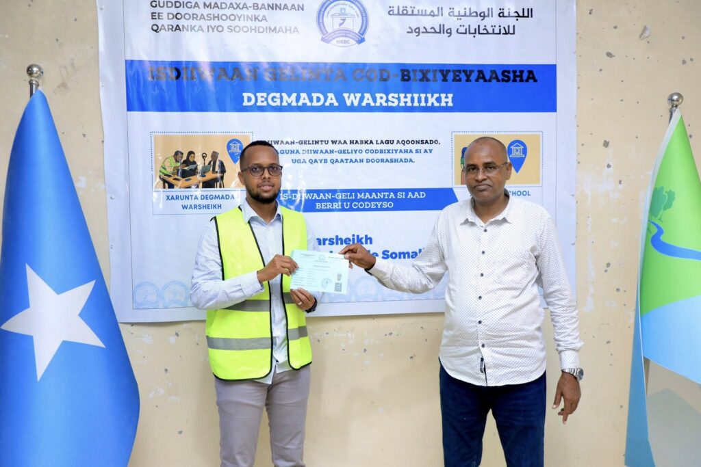 Xubnaha Guddiga Madaxa Bannaan ee Doorashooyinka Qaranka iyo Soohdimaha ee ku sugan Degmada Warshiikh ayaa si rasmi ah ugu daahfuray Degmada ololaha diiwaangelinta codbixiyeyaasha, sidoo kale daahfurka waxaa goob joog ka ahaa mas’uuliyiin ka socotay Maamulka Degmada.