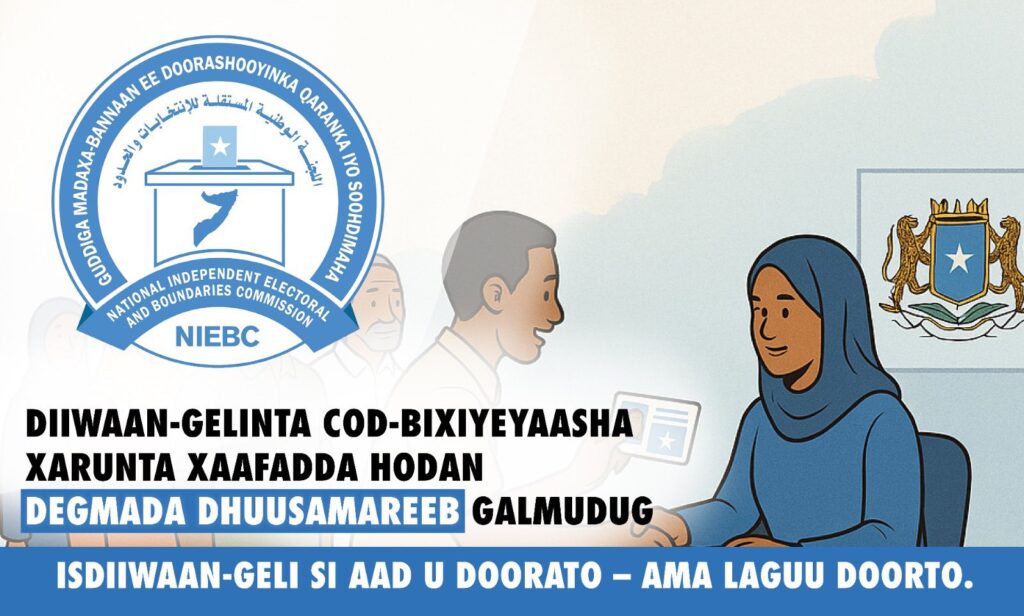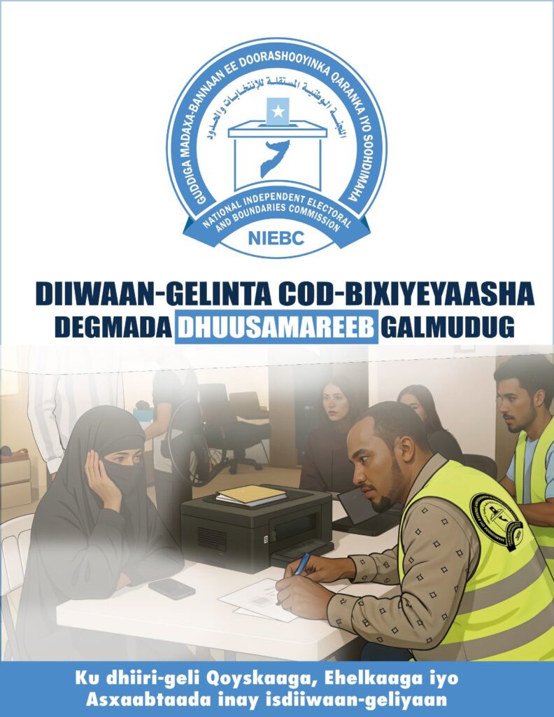 Muwaadiniinta Soomaaliyeed ee deggan magaalada Dhusamareeb ee Caasimadda Dowlad goboleedka Galmudug waxaa la ogaysiinayaa in dhammaan goobahaan hoos ku xusan ay barri oo ay taariikhdu tahay 02/07/2025, ay si rasmi ah ugu bilaaban doonta diiwaangelinta codbixiyeyaasha.