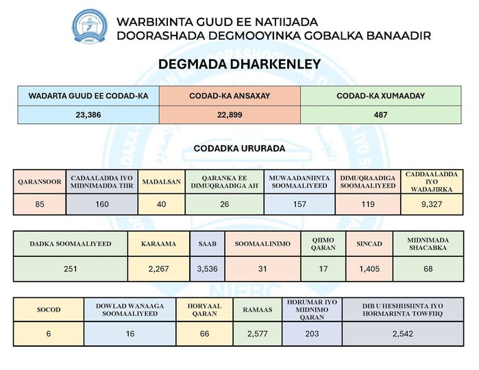 Degmada Heliwaa ayaa si rasmi ah u soo gabagabeysay doorashadii Golaha Deegaanka ee Gobolka Banaadir. Wadarta guud ee codadka la dhiibtay waxay ahayd 8,335, kuwaas oo 8,027 ay noqdeen codad ansax ah, halka 308 cod ay noqdeen kuwo xumaaday.